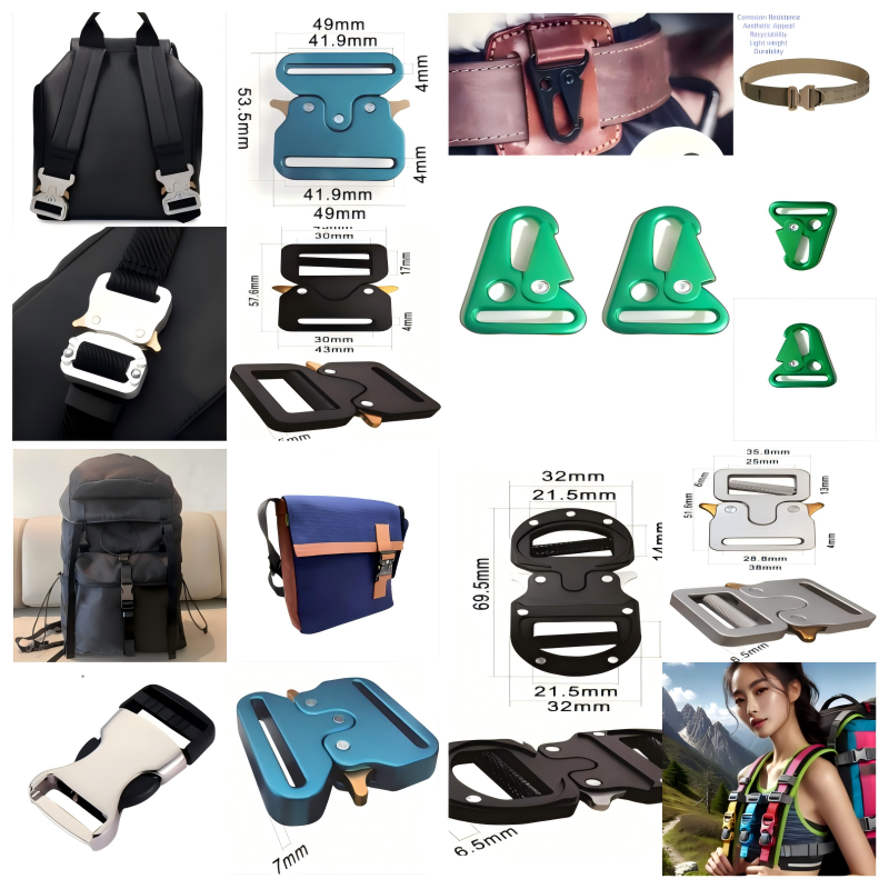 When it comes to selecting the right hardware for different types of backpacks, aluminum alloy buckles, clips, and fasteners offer unparalleled advantages in terms of strength, lightweight design, corrosion resistance, and overall durability. These components are perfectly suited to the specific needs of knapsacks, daypacks, and haversacks, ensuring that each style functions efficiently while providing a sleek, modern aesthetic. Whether for outdoor adventures or everyday use, aluminum hardware is a vital component for enhancing the performance and longevity of backpacks across various categories.
