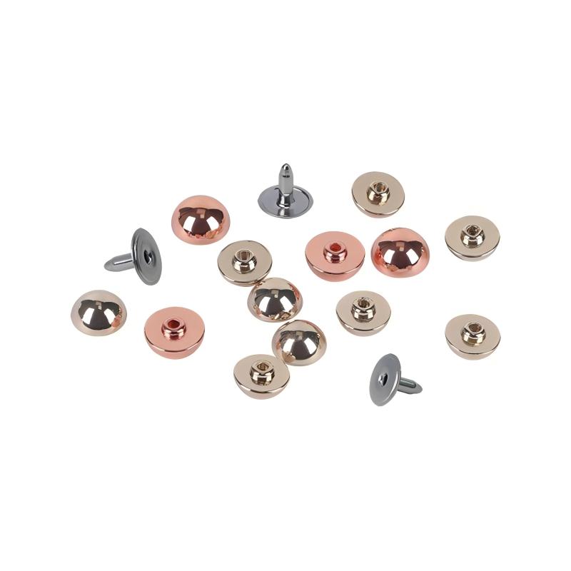 Stud Button Rivets combine the aesthetic appeal of stud buttons with the practical reinforcement of rivets. These components are perfect for adding a decorative yet durable touch to jeans, jackets, and accessories, ensuring both style and strength in high-wear areas.